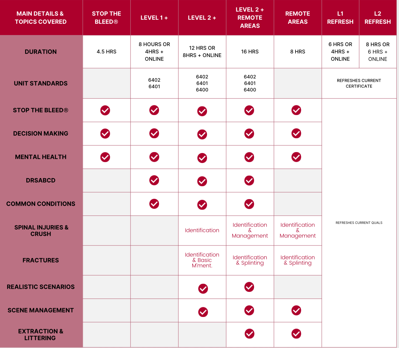 There are no unit standards for this course. You will receive a Stop the Bleed® certificate of completion.