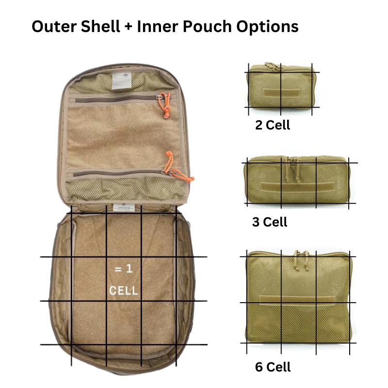 Internal features include two removable zippered mesh pouches and a Loop base that allows you to Velcro on our Inner Pouches creating an organised system that is adaptable to the way you need to operate.
