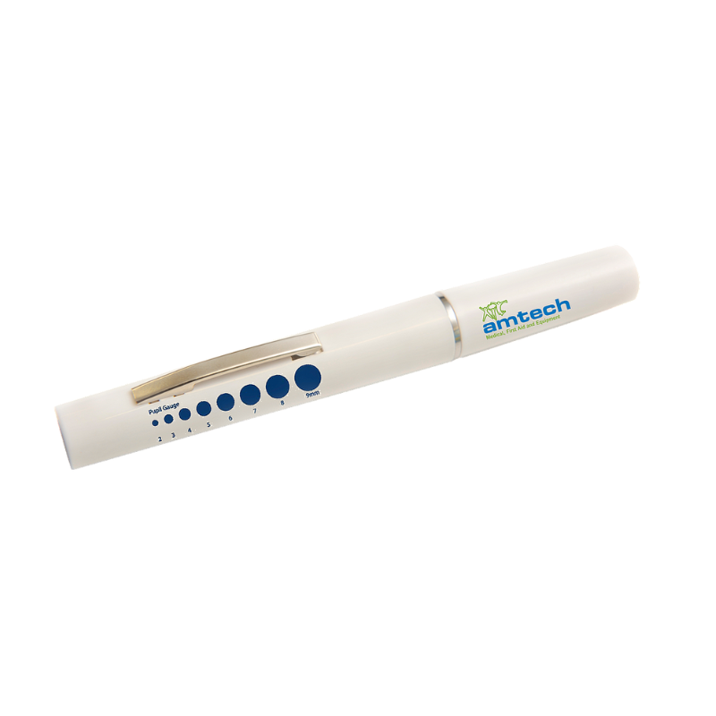 This ultra-light pen light is activated by depressing its tail-cap switch. It has a pocket clip for easy access.