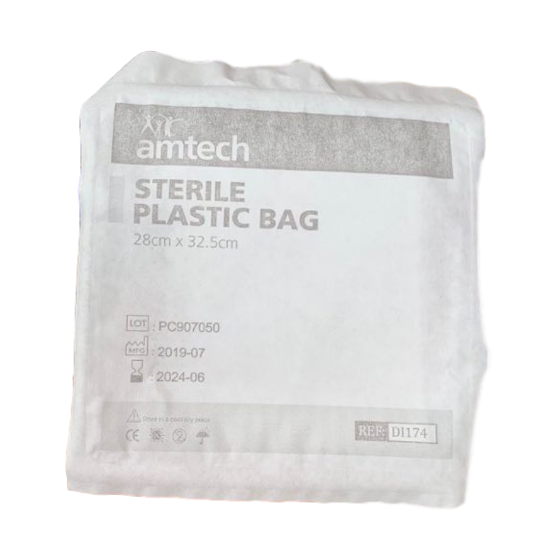 Single, sterile plastic bag.